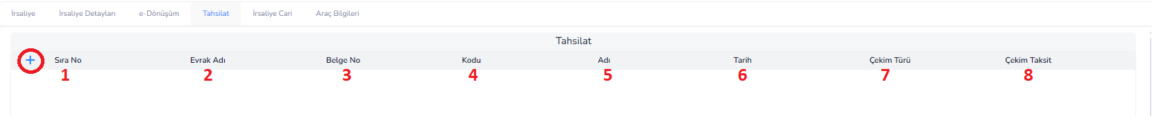 Tahsilat sekmesi, irsaliyeye ait finansal hareketlerin kayıt altına alınmasını sağlar