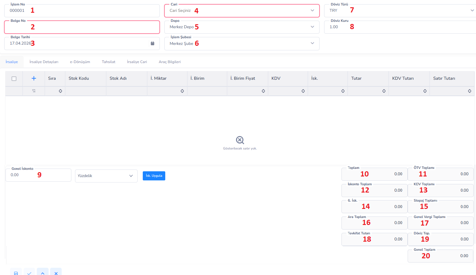 2.Belge No: İrsaliyeye ait referans numarasıdır