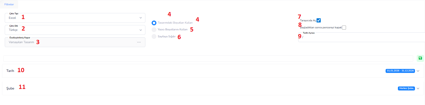 1.Çıktı Tipi: Raporun hangi formatta alınacağını belirler (örn: Excel).